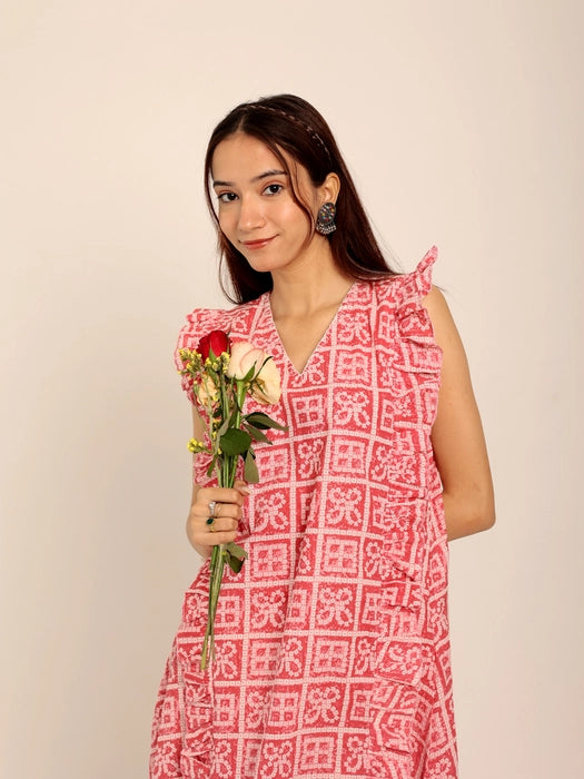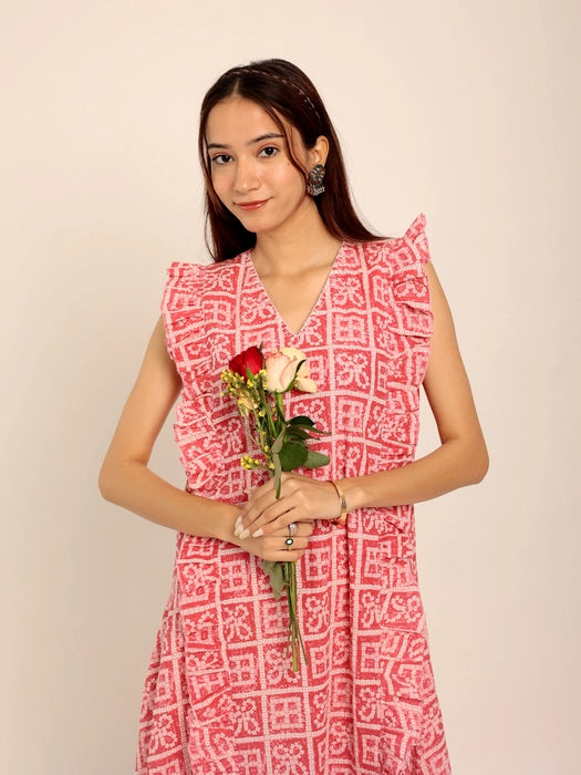 Print: Vibrant red floral print for a striking yet feminine look